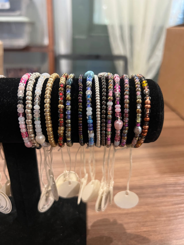 Add a pop of color and a touch of handmade charm to your look. These bracelets are made with high-quality glass beads and freshwater pearls, each one is carefully crafted to bring a little beauty to your everyday. Whether you're stacking them up or wearing one on its own, these bracelets add a unique, handmade touch to any outfit.
