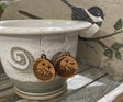 Measures 1” wide with a drop of 1.75” from top of ear wire to bottom of wooden piece.
