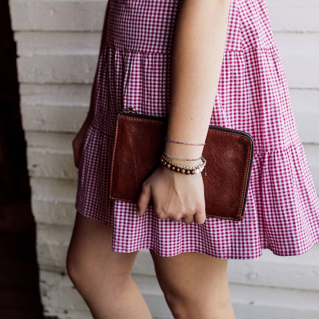 All you need and nothing more! The Goodwin wristlet wallet was inspired by our already existing Nampa wallet, but with a retro twist. Boasting top grain Argentinian leather and brass hardware finishes, but with an elongated zipper to allow for easier access to coins and cards. This retro design provides for the simple organization of your cash, receipts, cards and coins and still leaves room for your phone and a small key ring. The Goodwin wallet allows you to keep all your valuables tucked in close while still allowing you to go about the demands of life hands free. Designed in Canada