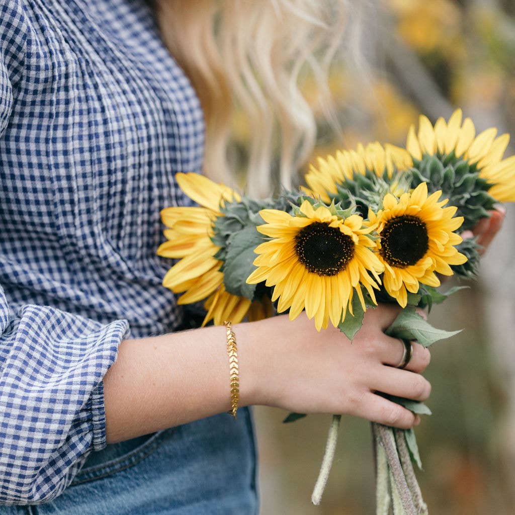 This piece is a visual tribute to the rolling wheat fields that define the spirit of the Peace Country. With gentle, flowing movement, the bracelet mirrors ripened wheat swaying under a prairie wind on a perfect harvest day. Measuring 21 cm in length, it brings a sense of grounded beauty and natural rhythm to any look. To keep your jewelry looking its best, avoid contact with water and cosmetic chemicals.