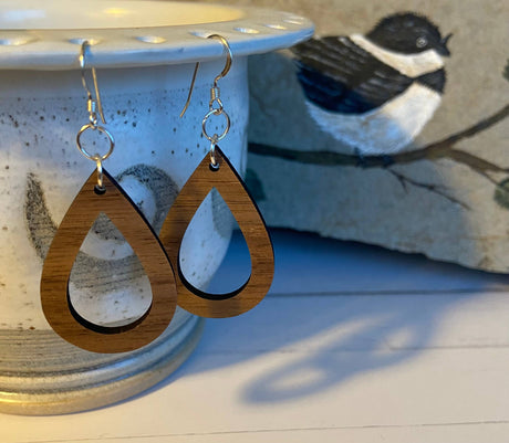 Walnut Wood Earrings - Open Teardrop