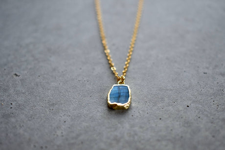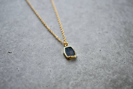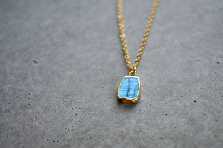 Labradorite Tiny Rectangle Gold Necklace