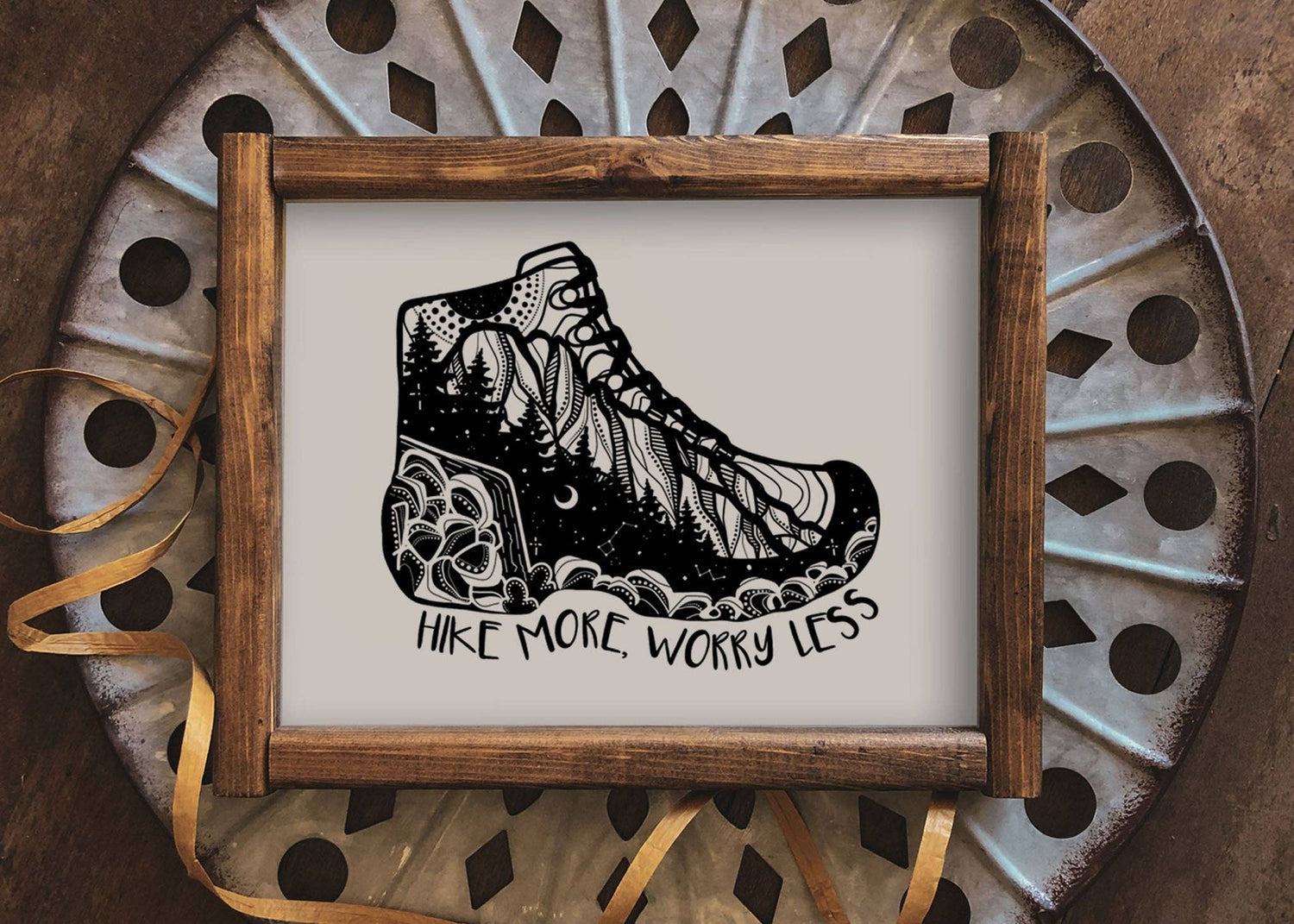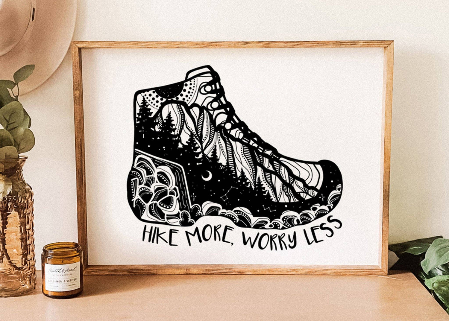 Hike More, Worry Less Print: 5"x7" is backordered and will ship as soon as it is back in stock.