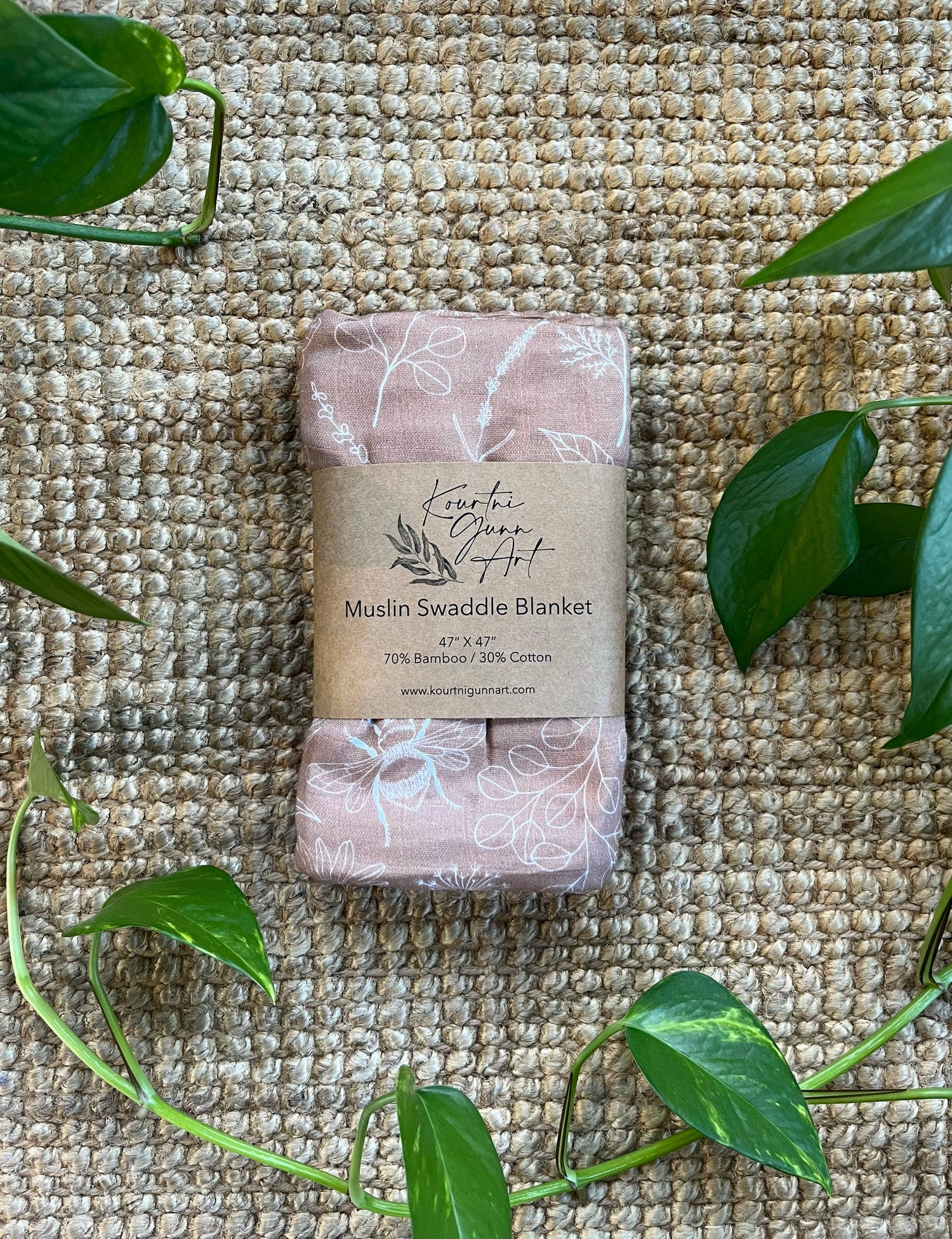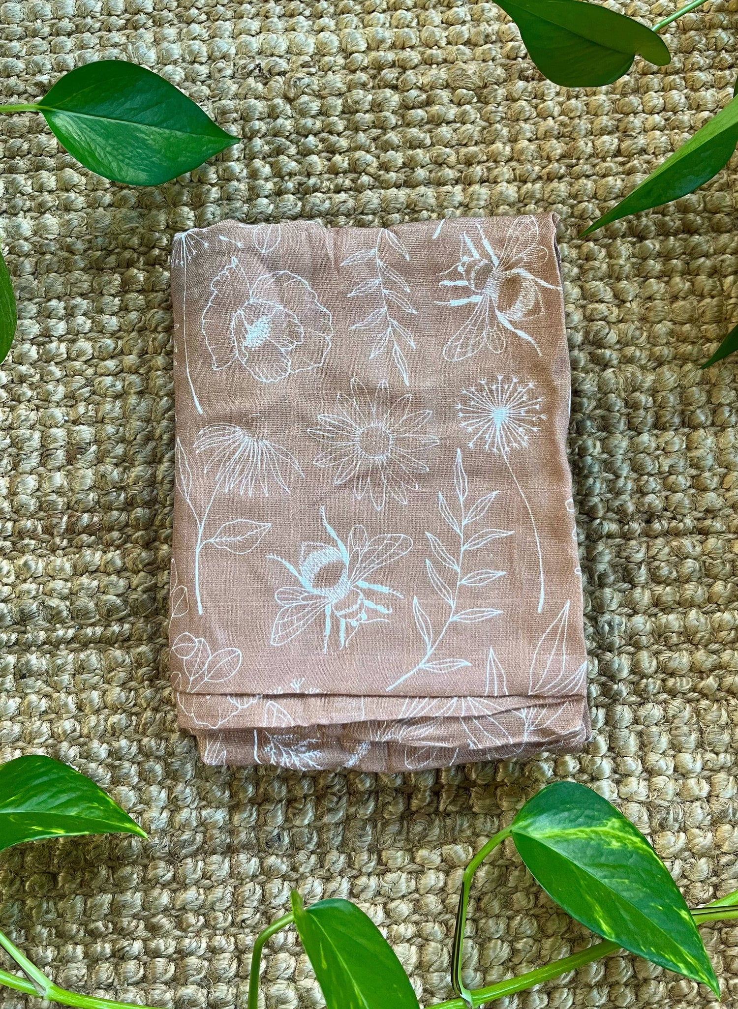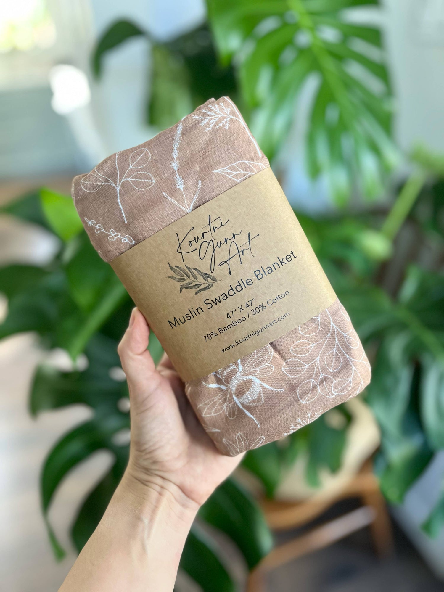 Wrap your little one in gentle comfort with this adorable swaddle blanket, featuring a hand-drawn bee and wildflower design by Kourtni Gunn Art. Made from a dreamy blend of 70% bamboo and 30% cotton, it’s incredibly soft, breathable, and perfect for sensitive skin. Measuring 47"x47", it offers plenty of room for swaddling, cuddling, or tummy time. Each blanket comes beautifully packaged with a Kraft paper label, making it a perfect gift for new parents or baby showers.