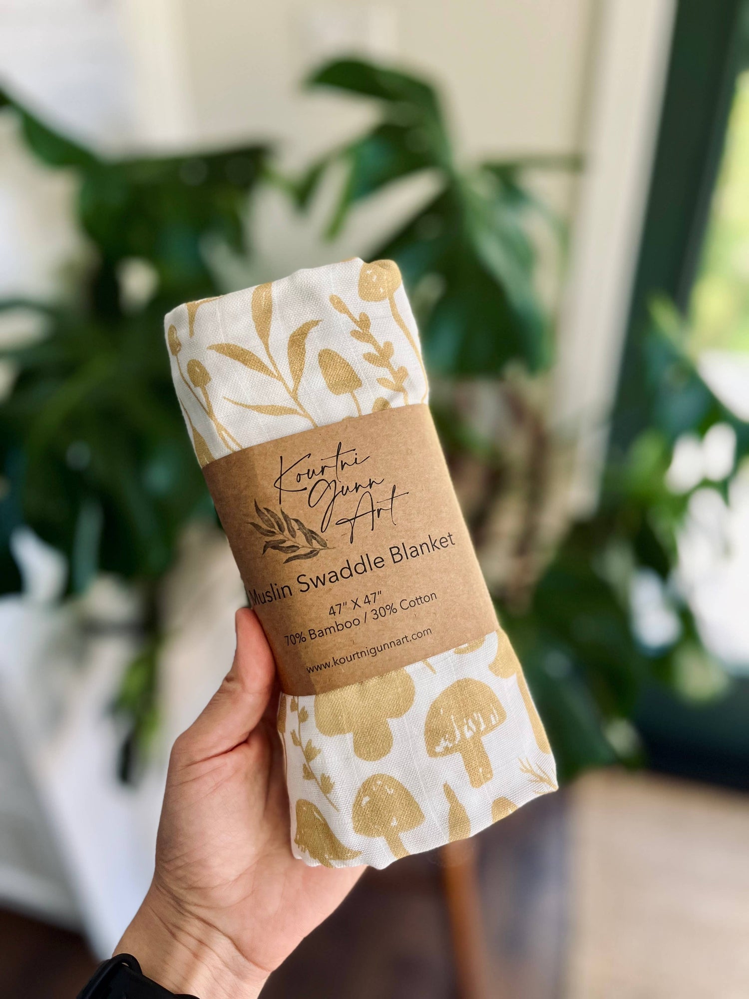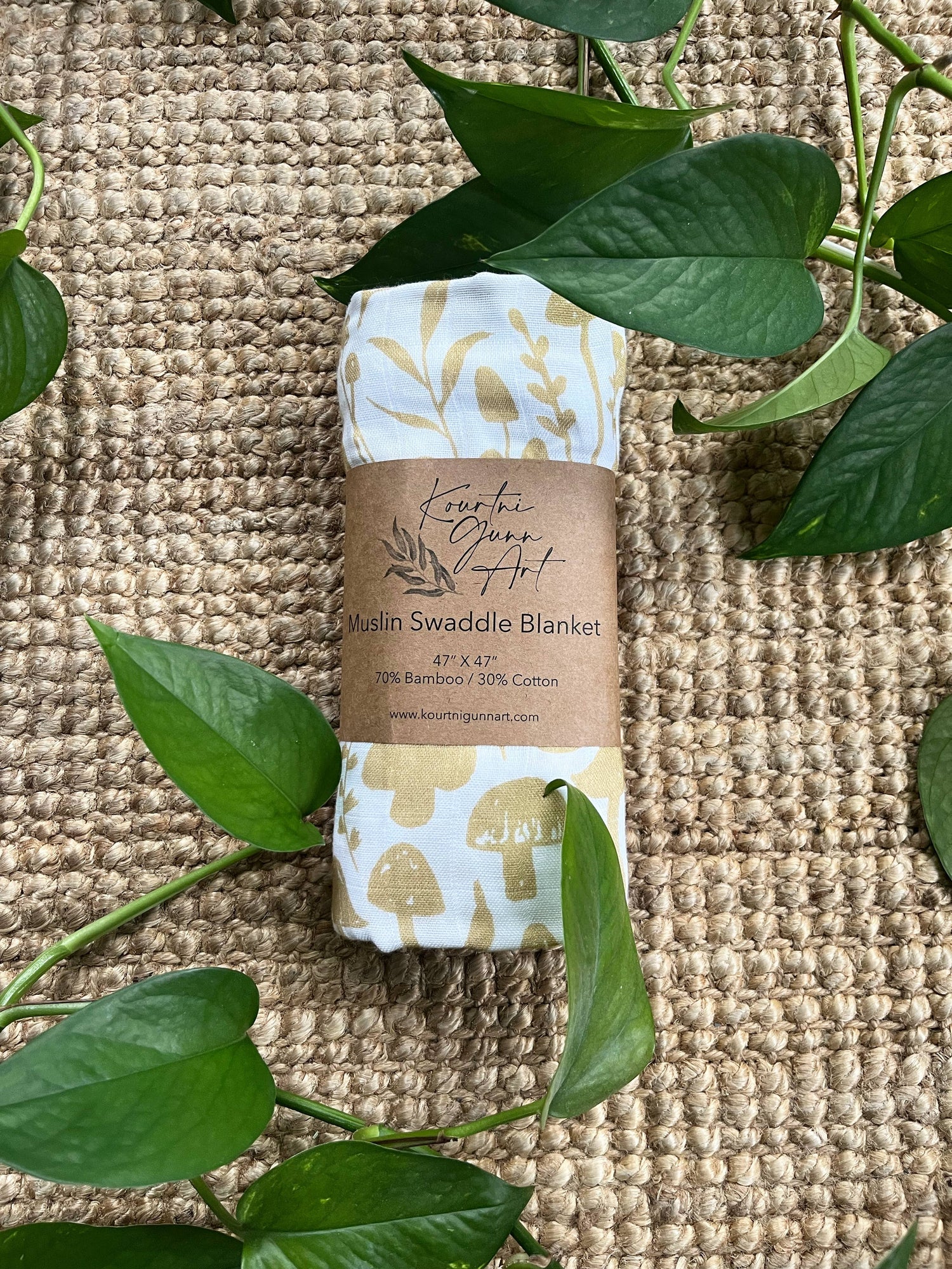 Hand-illustrated Muslin Swaddle Blankets by Kourtni Gunn Art!