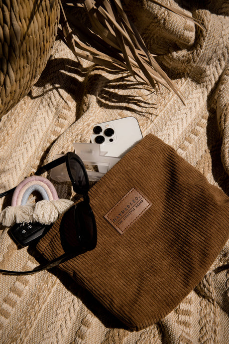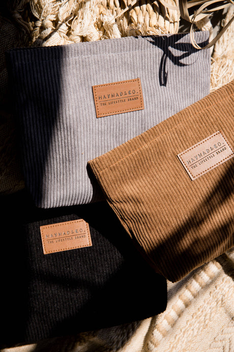 Corduroy Zipper Pouch: Black or Brown