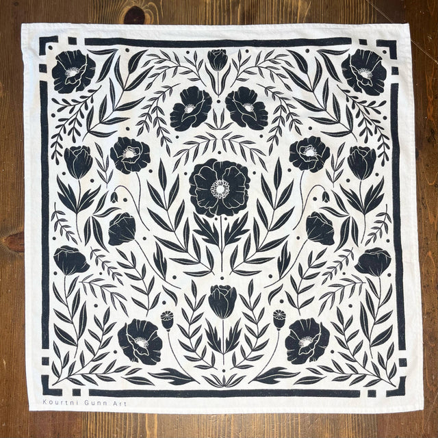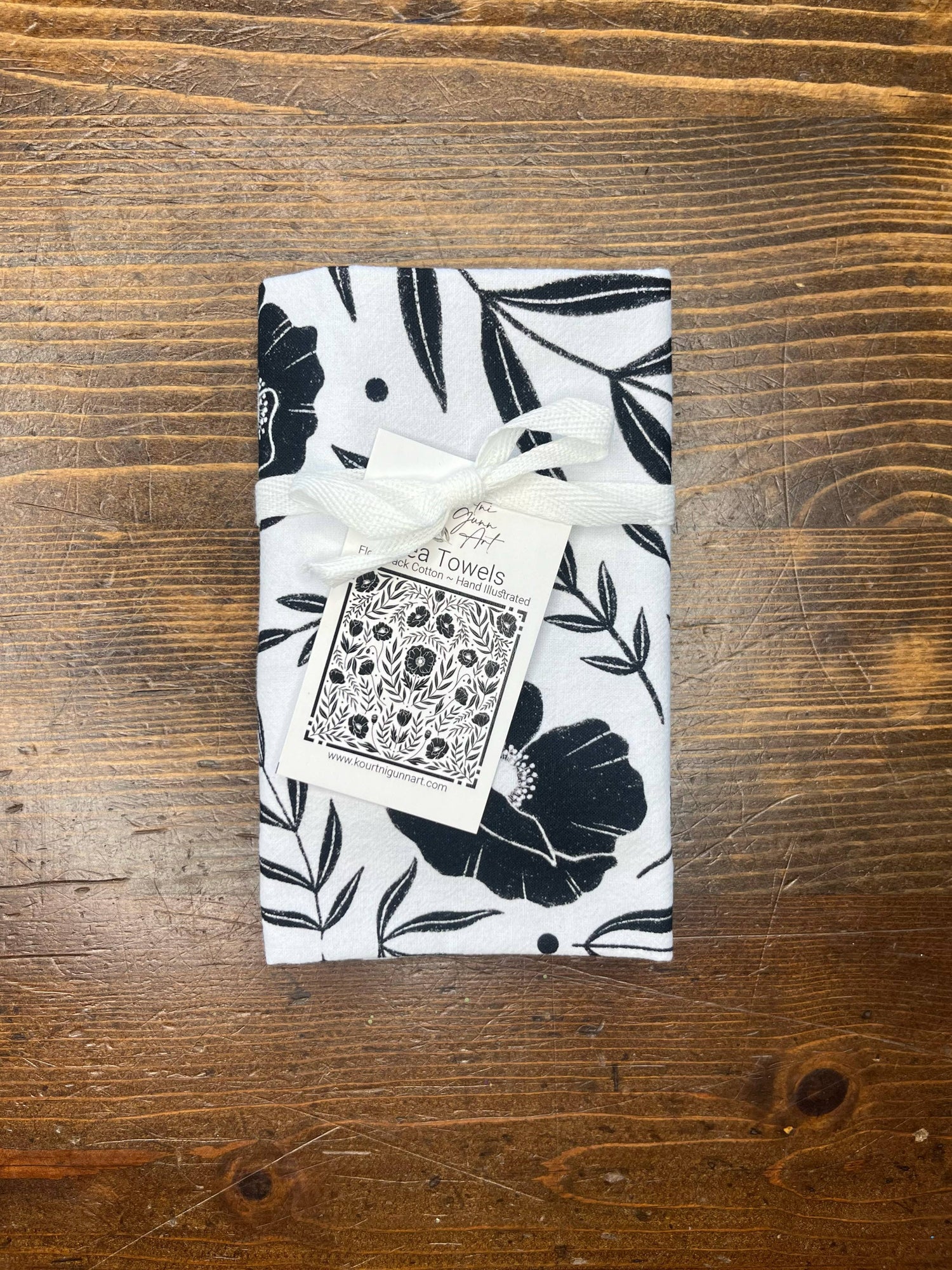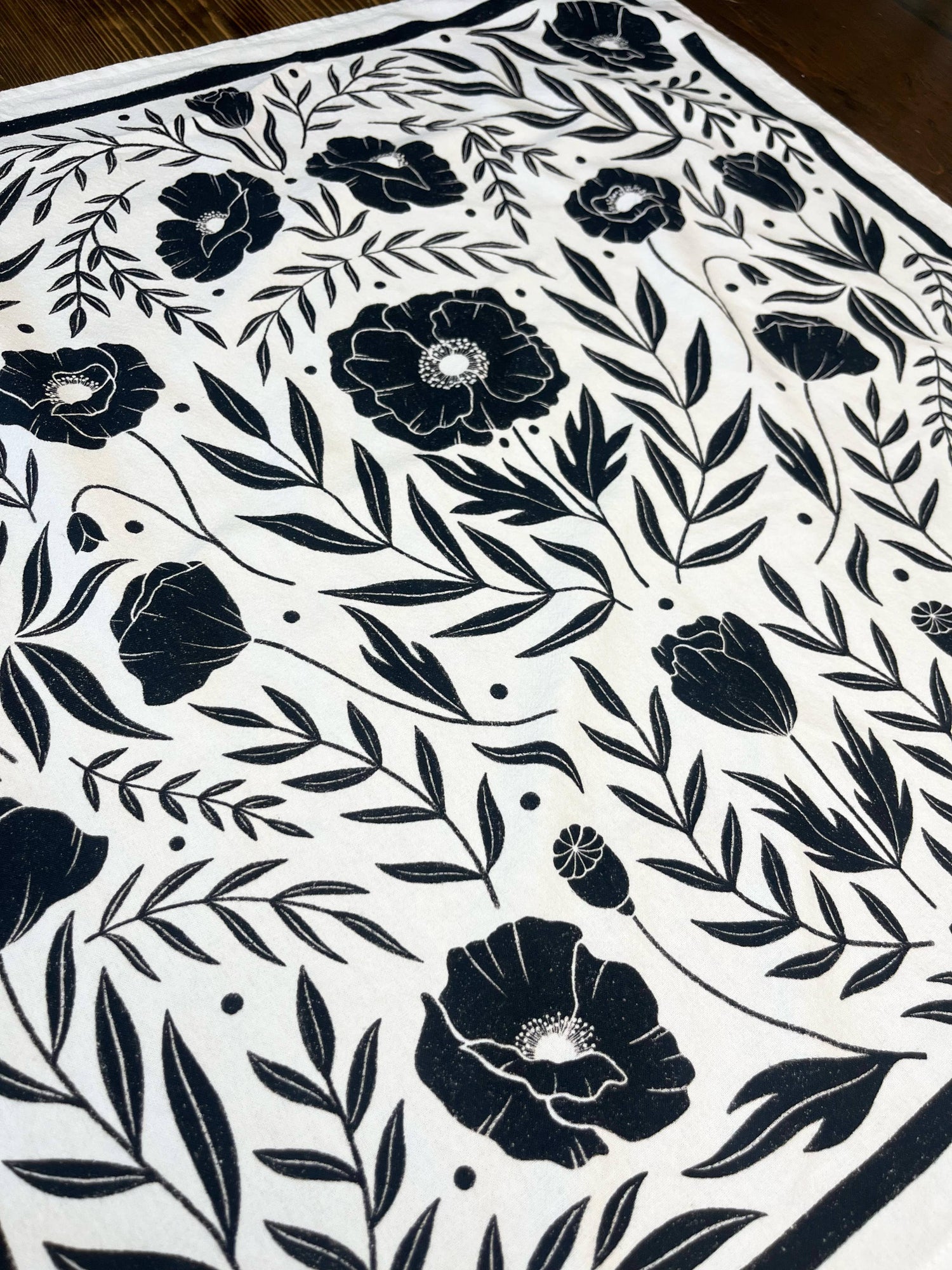 Black Floral Flour Sack Towel | Black Poppy Tea Towel