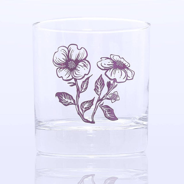 This classic lowball glass displays a lovely detailed sprig of the flowering dogwood tree, screen-printed in mauve purple ink. From our Woodland Spirits collection, inspired by the beauty and bounty of Pacific Northwest forests, this glass can be partnered with three other flora designs to create a stylish cocktail set! While we envision our nature-inspired drinkware as the ideal vessels for a refined botanical cocktail, the glasses are also suitable for everyday beverages such as water, juice and soda.