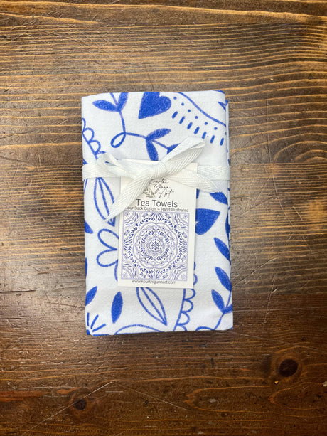 Mandala Flour Sack Towel | Blue and White Tea Towel
