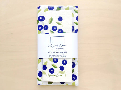 Blueberry Gift Duo | 1 Tea Towel + 1 Sponge Cloth