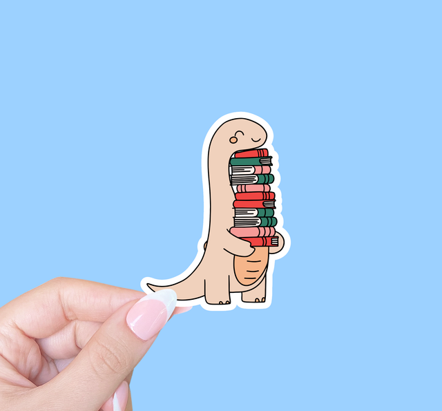 Dinosaur with Books - Sticker is backordered and will ship as soon as it is back in stock.