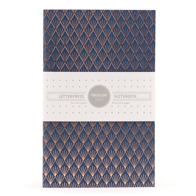 Part of our geometric foil series, this small pocket-sized deco notebook features a rose gold foil stamped dark blue cover. Inside this notebook, there are 48 dot-grid pages.