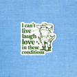 I can't live laugh love in these conditions This sticker measures approximately 2.5” by 2.25” (inches) It is printed on glossy sticker paper and laminated with vinyl. It is water resistant, and best for indoor use such as on Kindles, notebooks, laptops, shelves, etc.