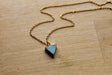 The pendant and chain are made from 16K gold plated brass and genuine amazonite stone. The triangle charm comes in just under half an inch (10mm) and comes on a 16” chain with 2” extender. All parts are nickel and lead free. Avoid getting wet. *Updated premium gold filled spring clasp.
