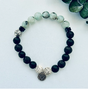 Inspired by the rugged energy of Bold Point, this handcrafted bracelet combines the earthy strength of Kiwi Jasper with the raw power of lava stone and the protective depth of black onyx. Balanced by the natural calm of lotus seed, this piece channels resilience, grounding, and quiet determination. Designed for those who move with purpose, it’s a wearable reminder of inner strength and bold beginnings.