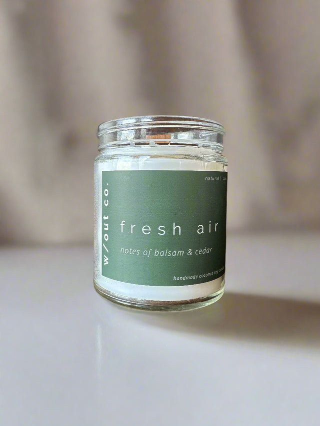 9 oz coconut soy wax, crackling wooden wick, hand poured.