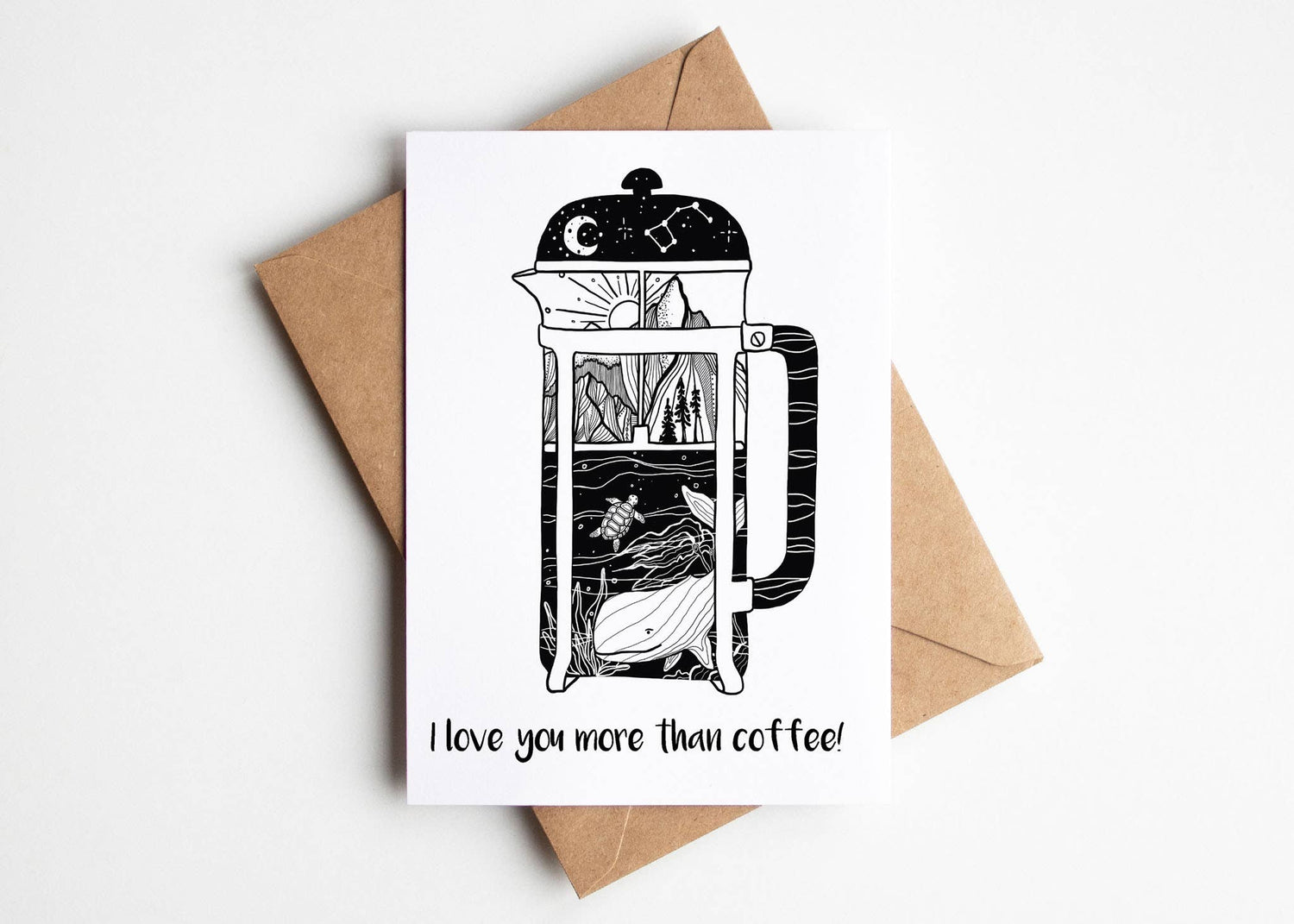 "I Love You More Than Coffee" - Greeting Card is backordered and will ship as soon as it is back in stock.