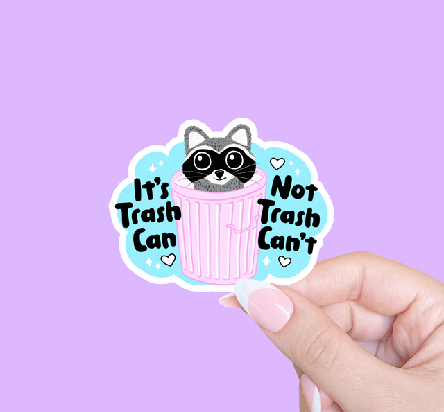 "It's Trash Can, Not Trash Can't" - Raccoon sticker is backordered and will ship as soon as it is back in stock.