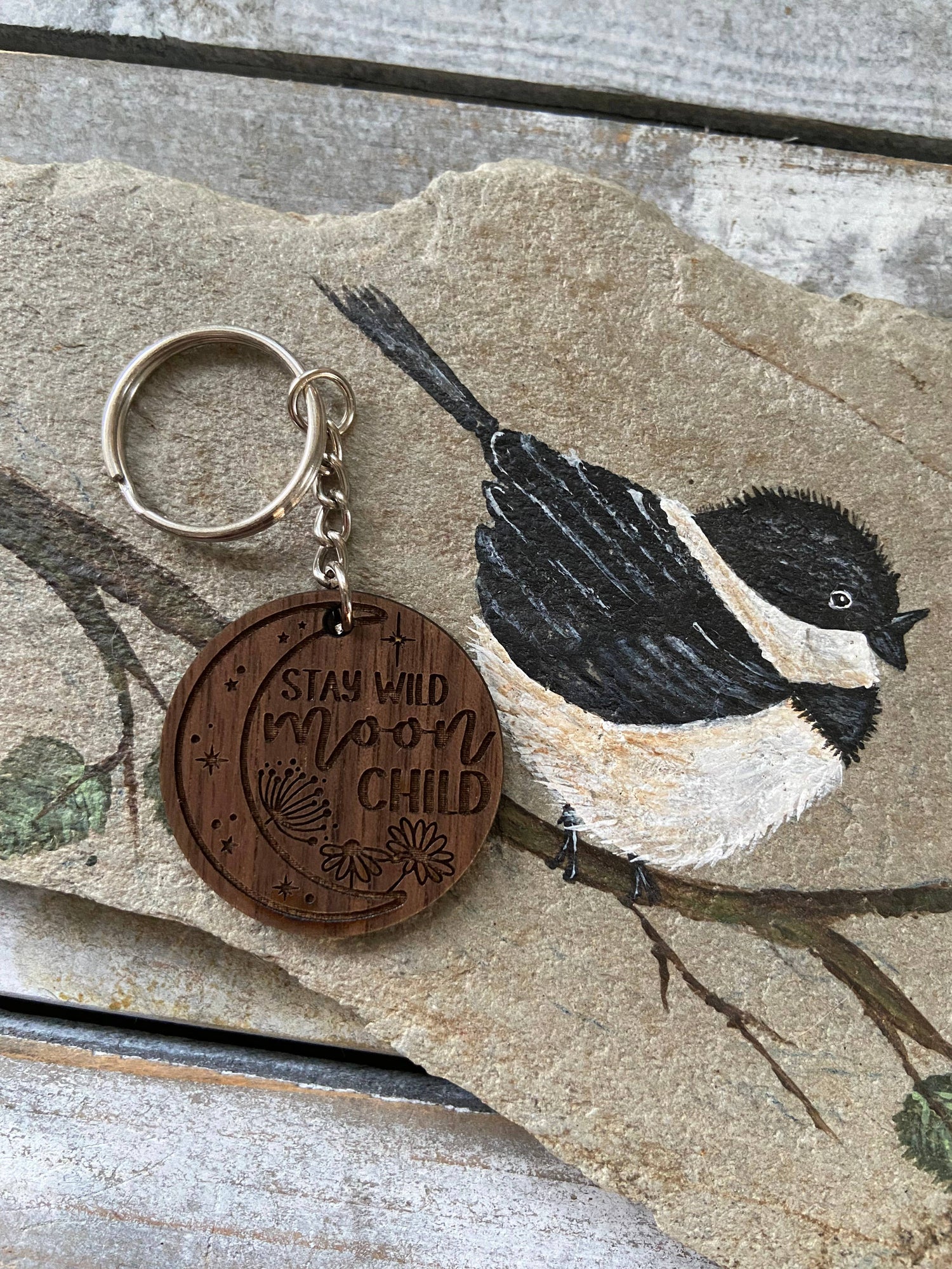 Wooden Keychain - "Stay wild moon child" is backordered and will ship as soon as it is back in stock.